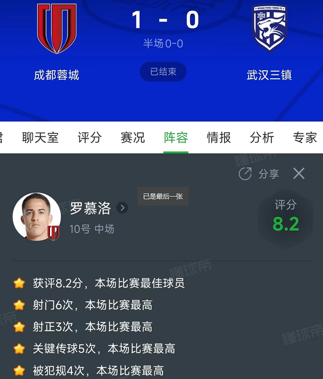 国足必须归化他,果然太强了。今晚中超迎来新赛季第一轮的较量,成都蓉城主场1比0治服武汉三镇,整场比赛中,推崇最亮眼的球员无疑是巴西中场罗慕洛,他在比赛中5项数据排行全场最高,其中,4项数据更是高居当今中超第一位,从今晚他的3个细节就不错看到欧洲杯体育信息,罗慕洛皆备是中超最应该拿下的超等归化!