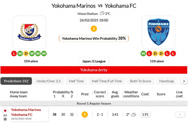 Yokohama Marinos have succeded in keeping a clean sheet in their 3 most recent home clashes against Yokohama FC in J1 League
