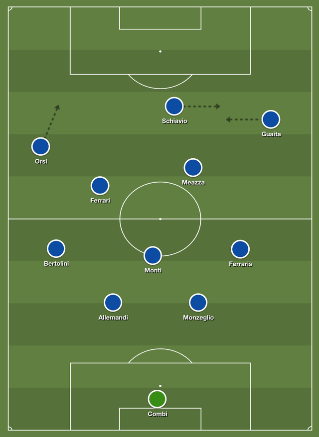 随后意大利队发起苛虐要紧,比赛还剩9分钟时,雷蒙多·奥尔西扳平比分。加时赛中,博洛尼亚中锋安杰洛·斯基亚维奥接到恩里克·瓜伊塔的传球后,打进制胜球。兴趣兴趣的是,斯基亚维奥在统统这个词加时赛中一直带伤坚握,困顿不胜,以致在进球后倒地不起。波佐在比赛中的一个要津计谋是让斯基亚维奥和瓜伊塔,即中锋和边锋,不拒却换位置,事实讲明这一计谋十分见效,两人联手打进了制胜球。