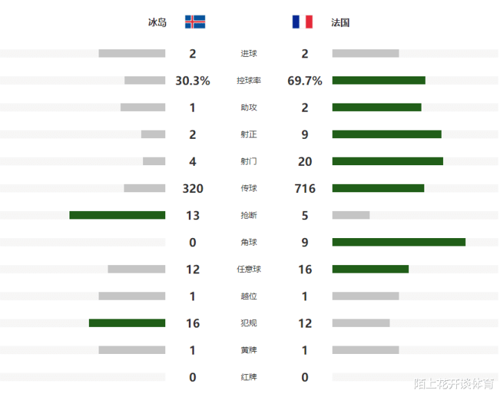 跟着主裁判一声哨响,实力遒劲的法国队就反客为主,在场上压着冰岛队猛攻,第2分钟高卢雄鸡就诳骗左侧角球的契机,创造出了一次极具胁制的敲门,恩昆库后点近在目下的攻门被冰岛门将骁勇化解,第15分钟孔德大禁区外的远射,又一次被主队门将纯粹拿下,扛住高卢雄鸡开局的围攻后,冰岛第25分钟给古德蒙德松创造出了单刀契机,后者莫得把捏住,裁判随后也吹罚越位。
